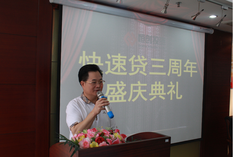 7月6日上午,广东恒创投资股份有限公司旗下快速贷P2P互联网金融平台三周年庆典大会,在公司总部广东惠州双子星国际商务大厦B座20楼会议室隆重举行。