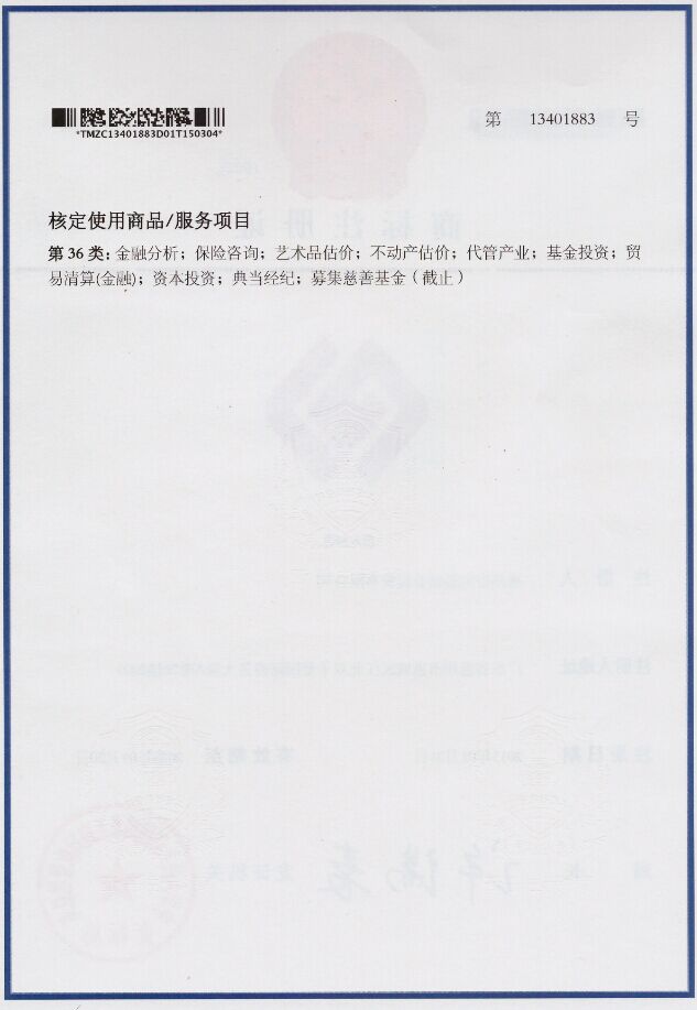 商标注册证书(正面)